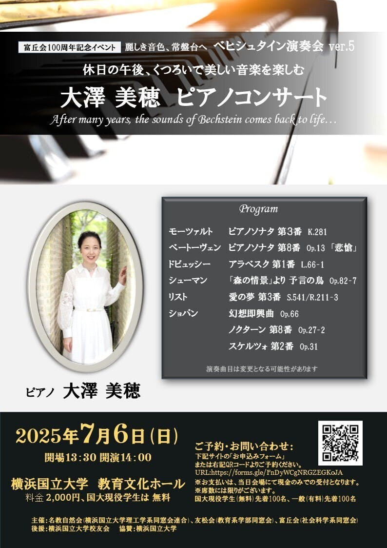 チケットのお申し込みは、ベヒシュタイン演奏会Ver.5お申込みフォーム から♪