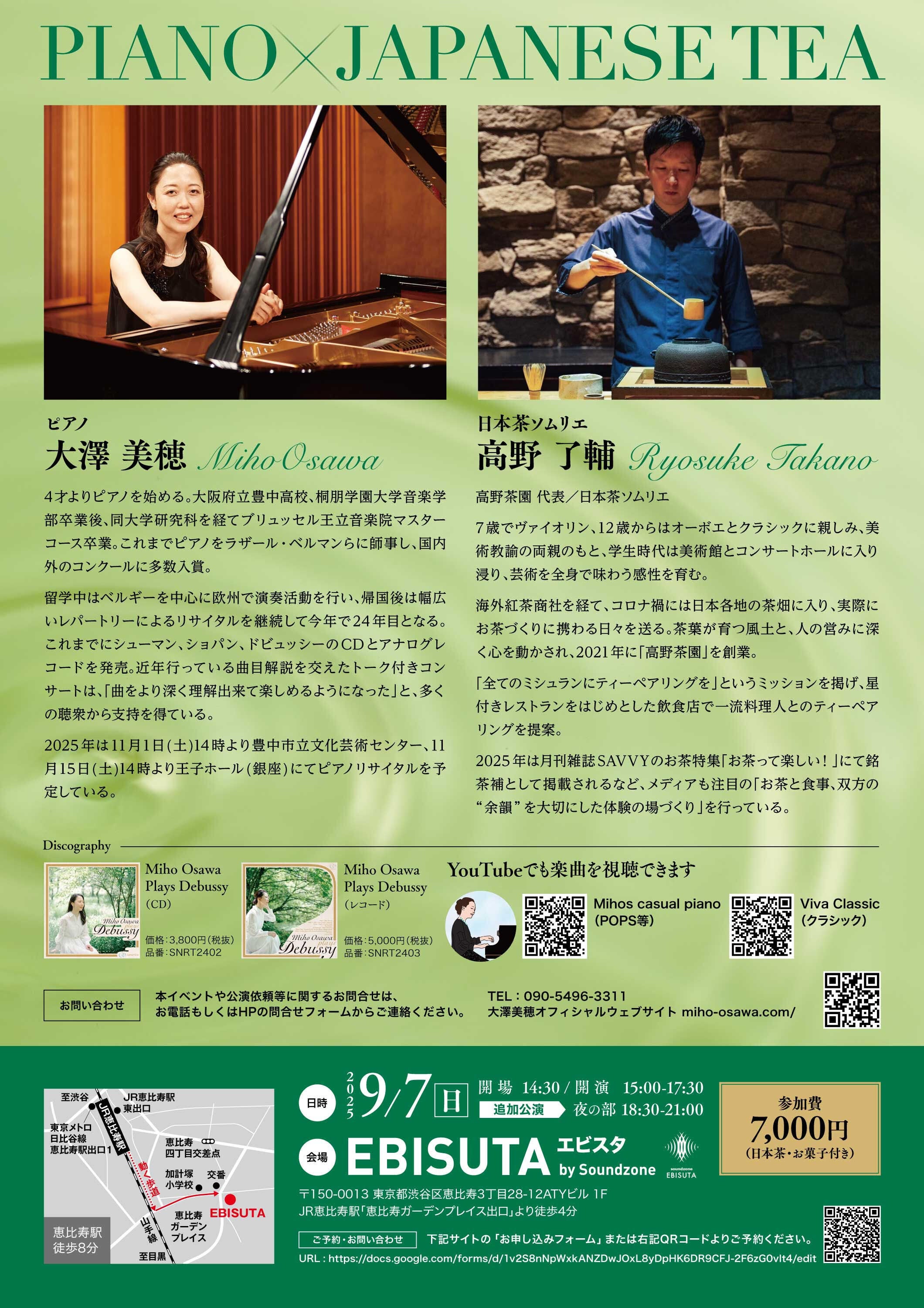 高野さんは大変なクラシックファンでいらっしゃって、当日は日本茶とピアノ曲にちなんだお話なども、していただく予定です。