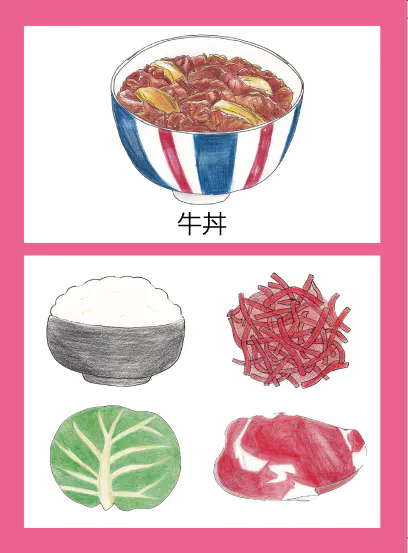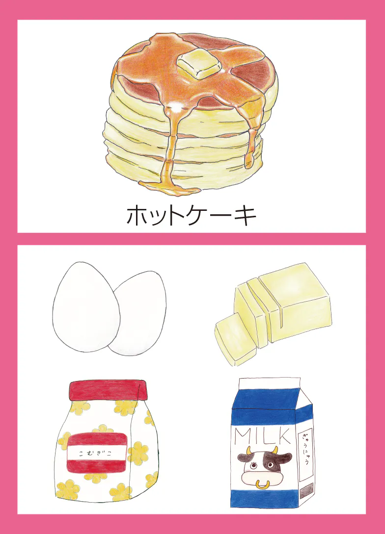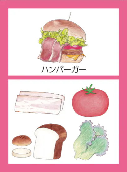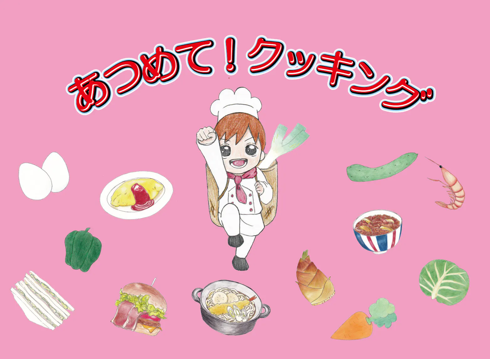 「あつめて!クッキング」は、プレイヤーがコックさんとなって、メニューカードに描かれた料理に必要な食材を集めて誰よりも早く料理を完成させるカードゲームです。