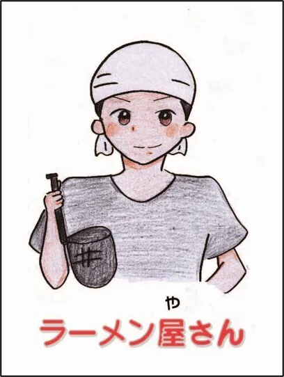 2. スタートプレイヤーは自分の読み札から1枚選び、「行ってきまーす!」と言ってから読み札のお仕事のジェスチャーをします。