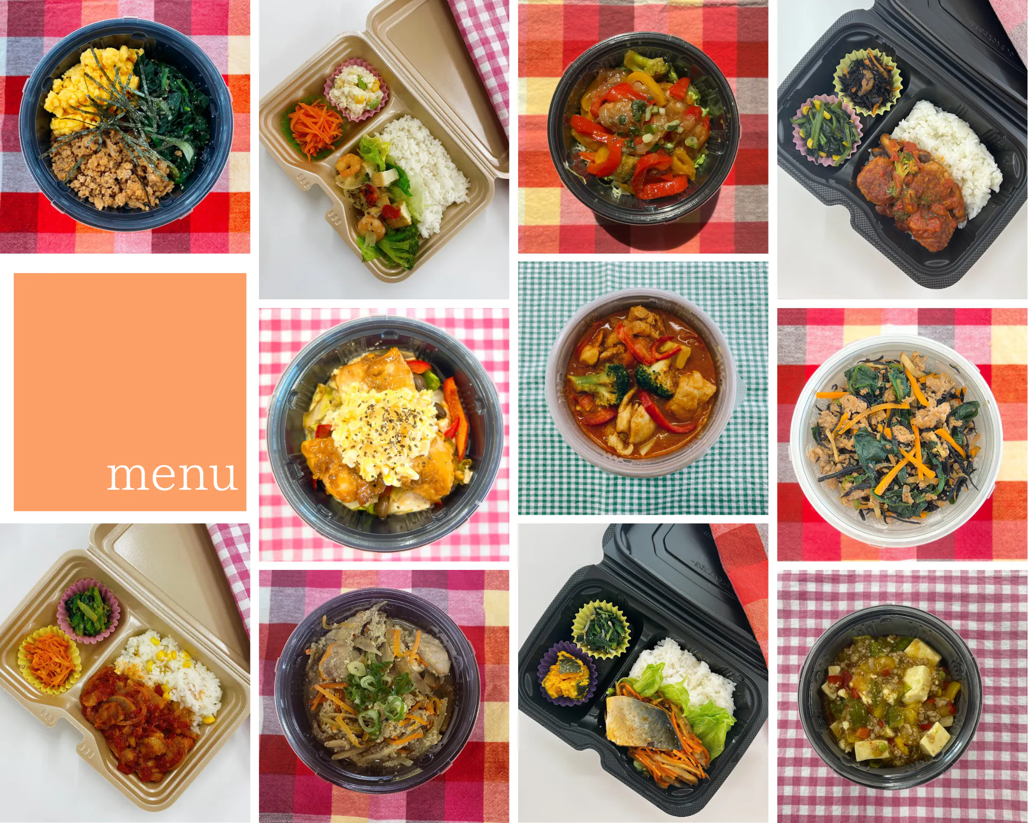 なかには、1食分で1日に必要なたんぱく質や野菜が1/3以上とれるものもあります!キッチンカーで販売しているメニューは全部で100種類以上あり、お弁当は、日替わりで3種類ずつ販売しています。