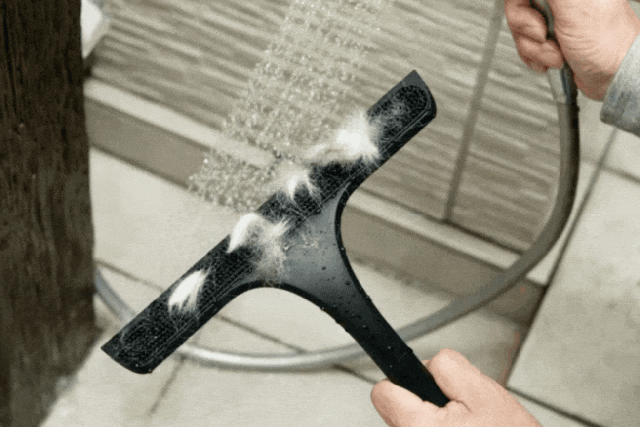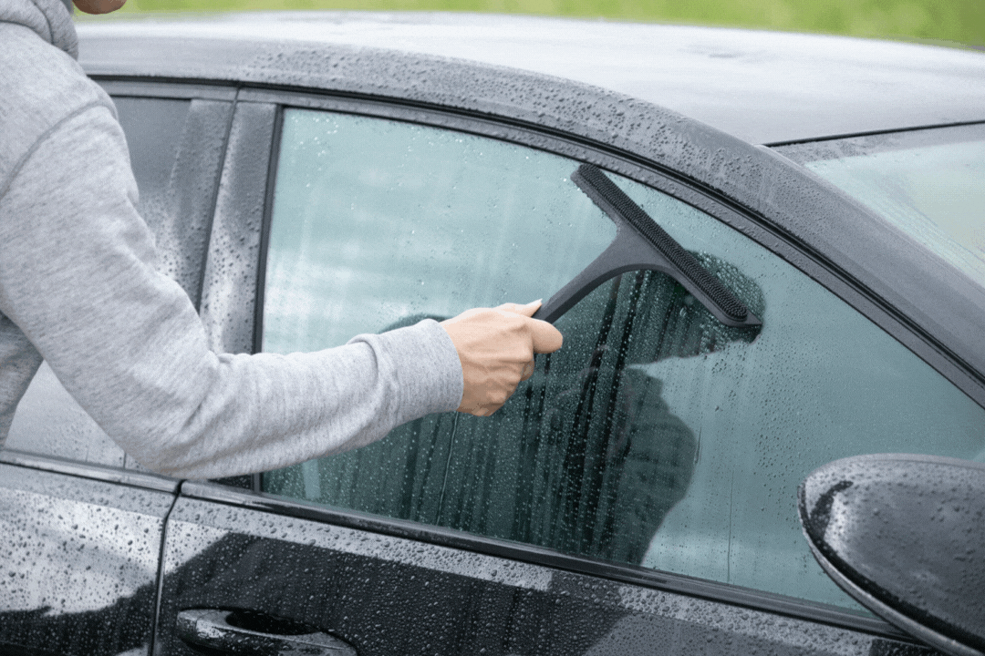 水が重力によって自然に流れるように、上から下に向かって、ワイパーを軽く滑らせて水を切ります。
