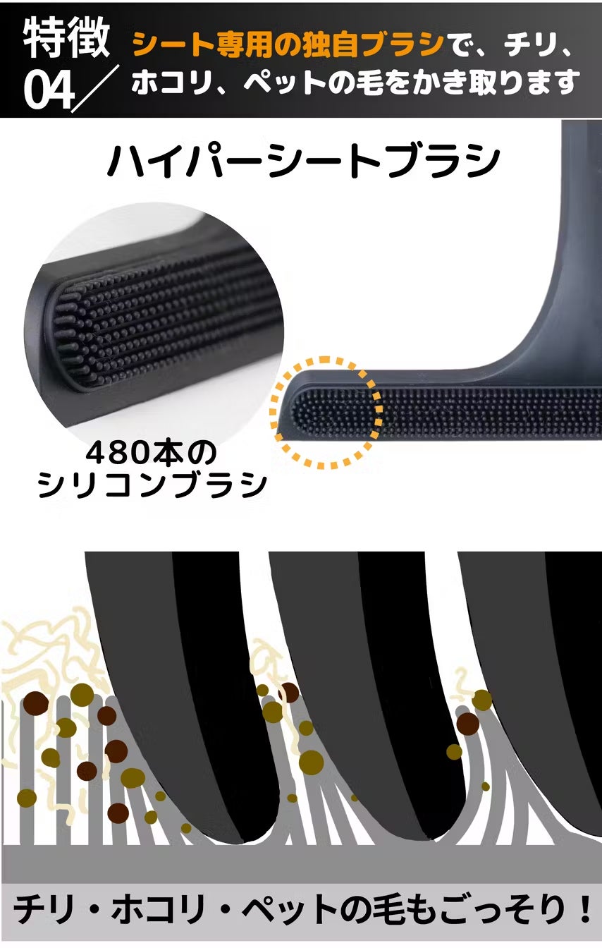 座席のホコリやペットの毛をかき取る