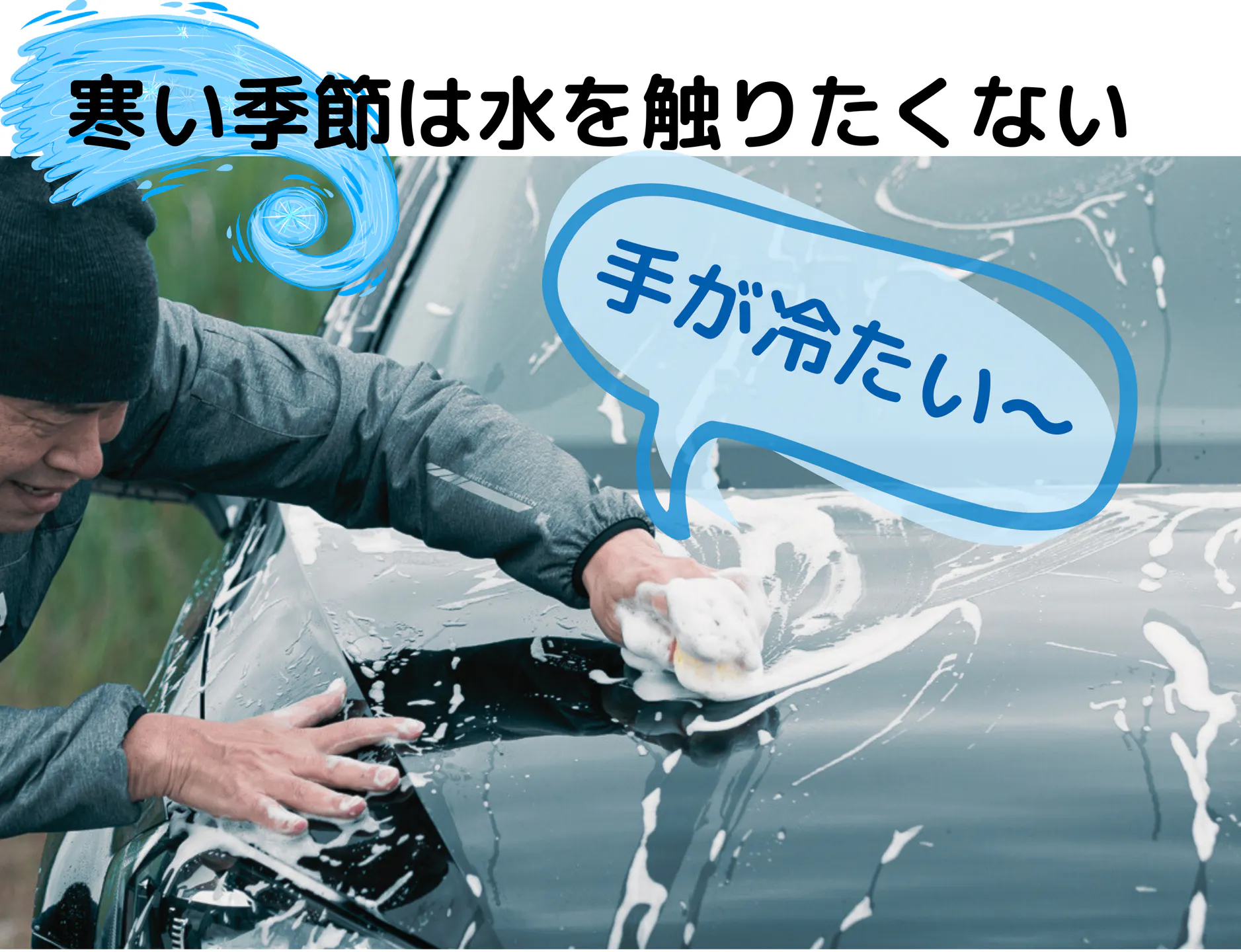 とくに冬の洗車は水が冷たいので、さっさと済ませたいですよね。カースイーパーは水に極力触れることなく、しかもスピーディに水切りができるので、すごく快適に洗車ができます。
