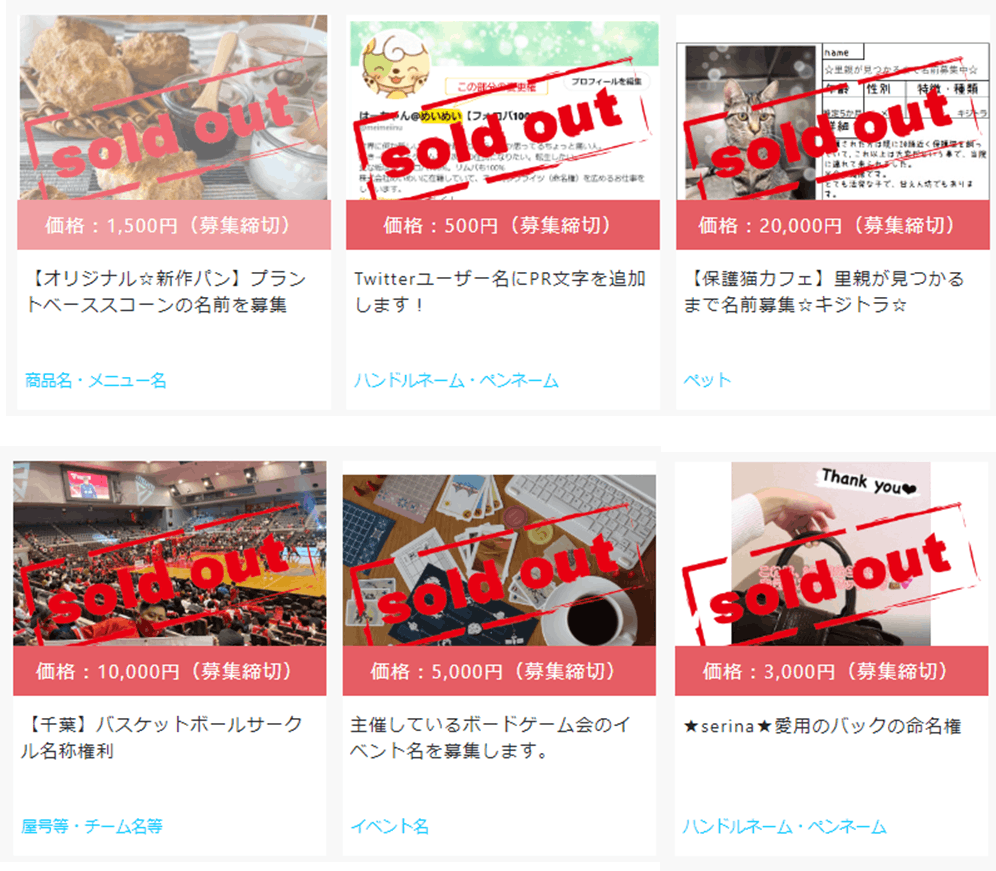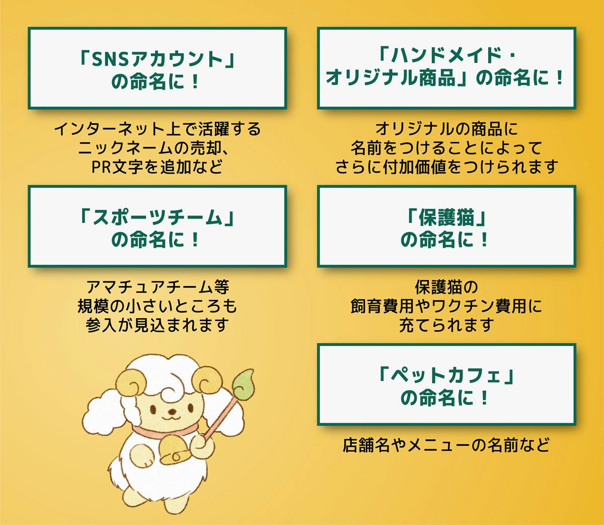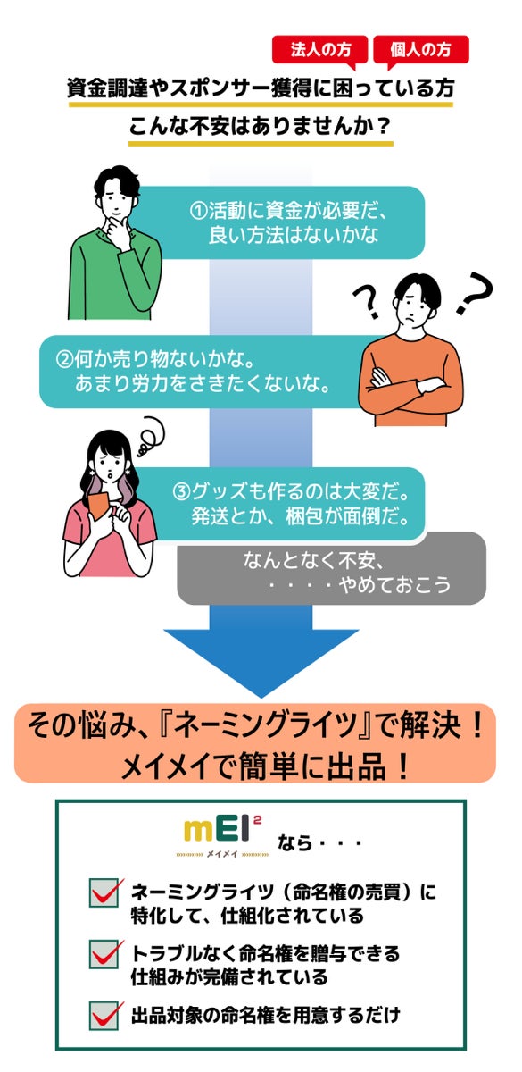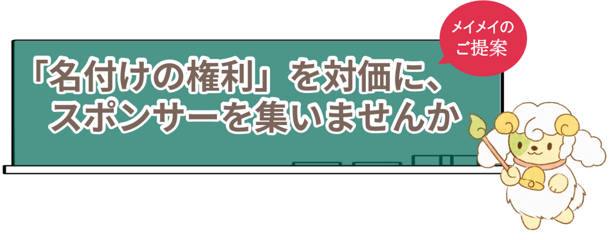 メイメイで「名付けの権利」を対価にスポンサーを集める機会を提供します。