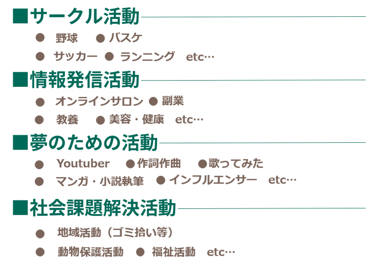 何故なら、インターネットの普及により、私たちの活動のあらゆる側面が公に展示できる機会が増えているからです。以下は活動の一例です。