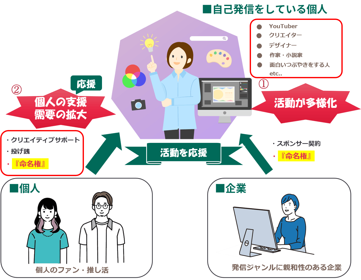 最近では、SNSの発展に伴い、個人も自分のオンライン空間やコンテンツにネーミングライツを導入する機会が増えてきました。