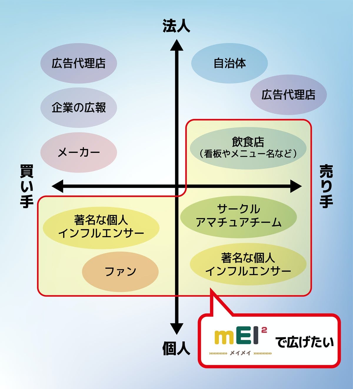 この広告でメイメイを広め、ネーミングライツで新しい応援の形、新しい広告マーケットの形をつくり、より良い社会を目指します。