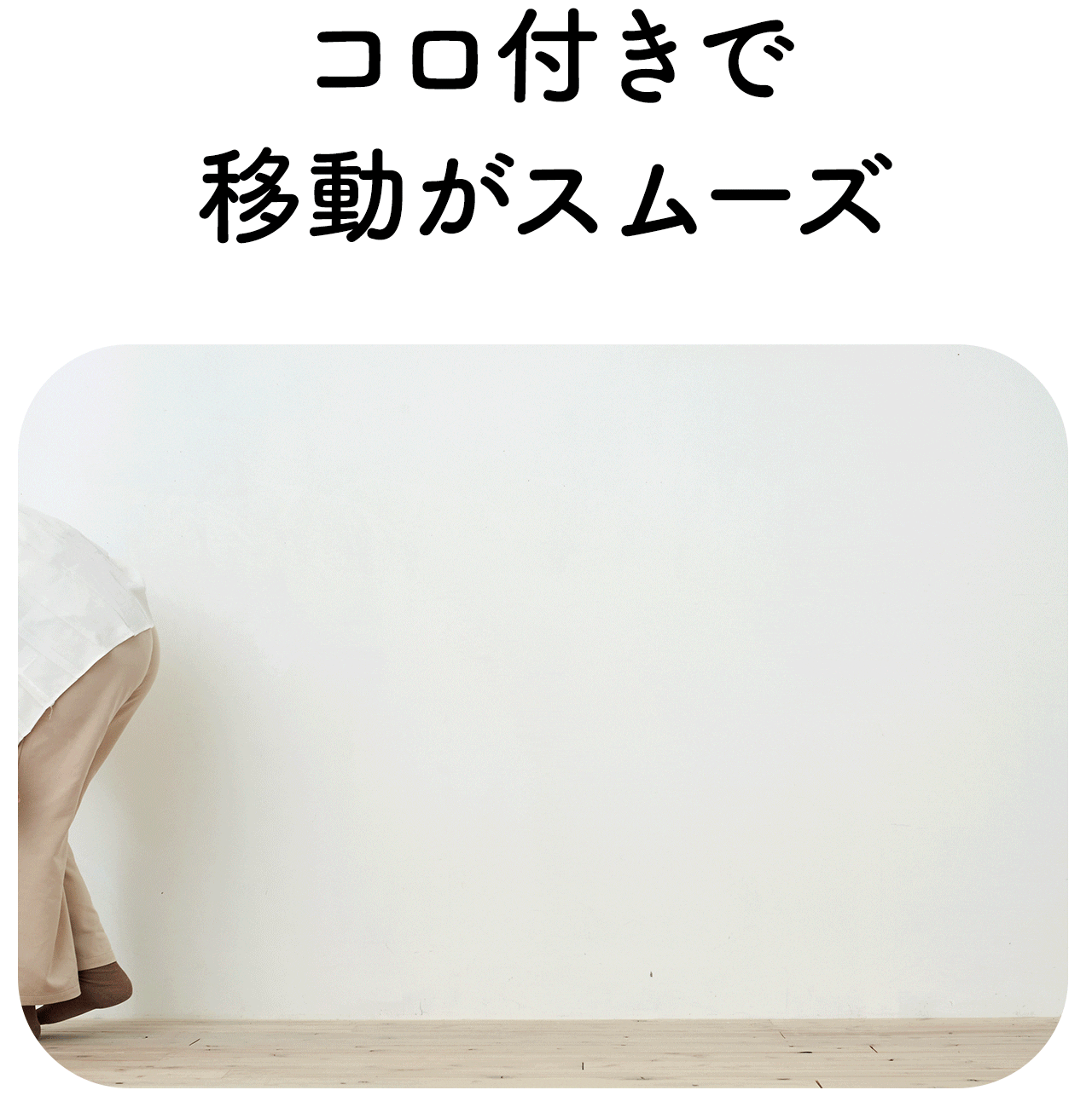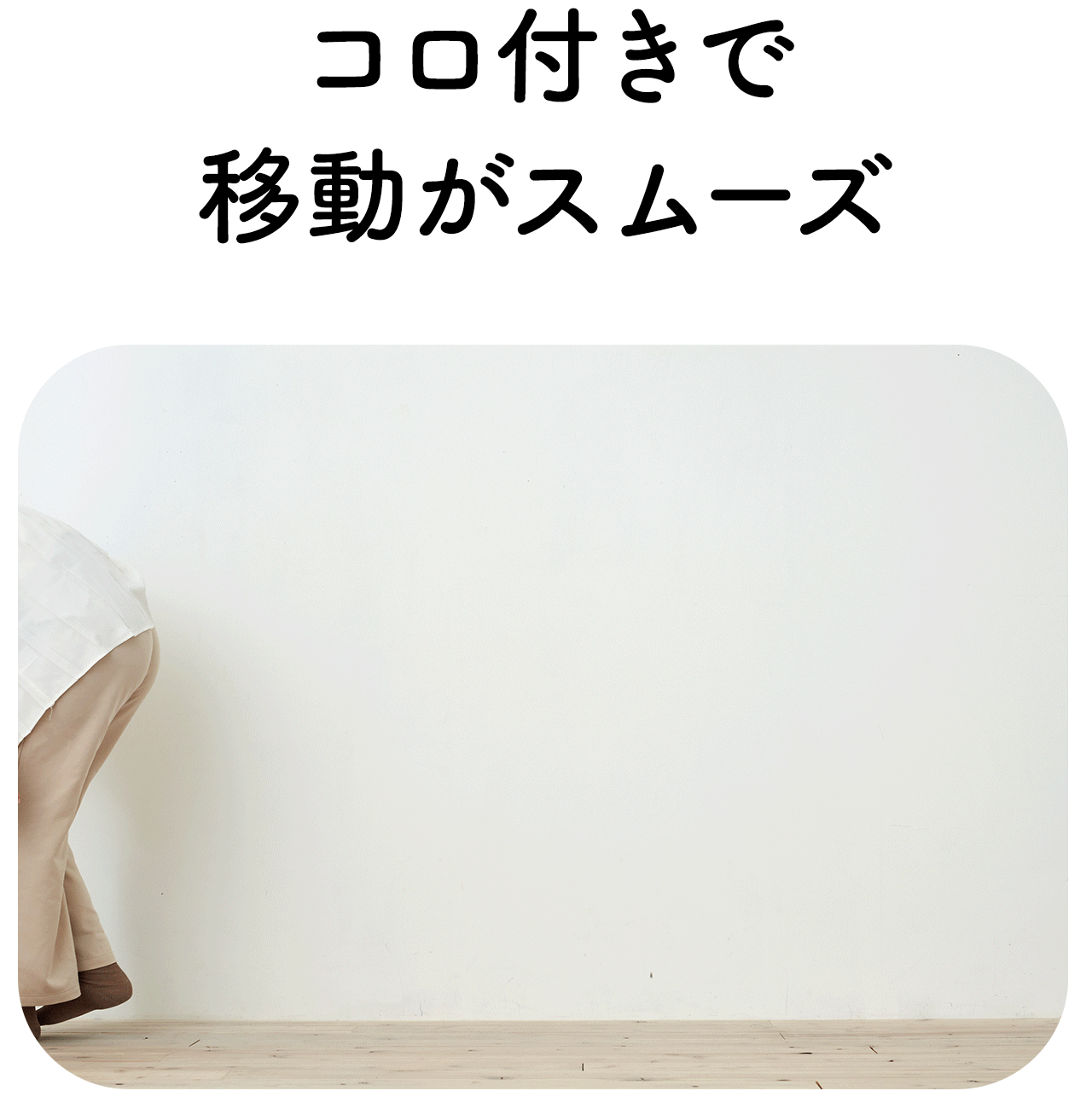 本体底面には2箇所のローラー付き。女性でも楽に移動させることができ、砂の交換やトイレ周辺のお掃除が手軽に行えます。