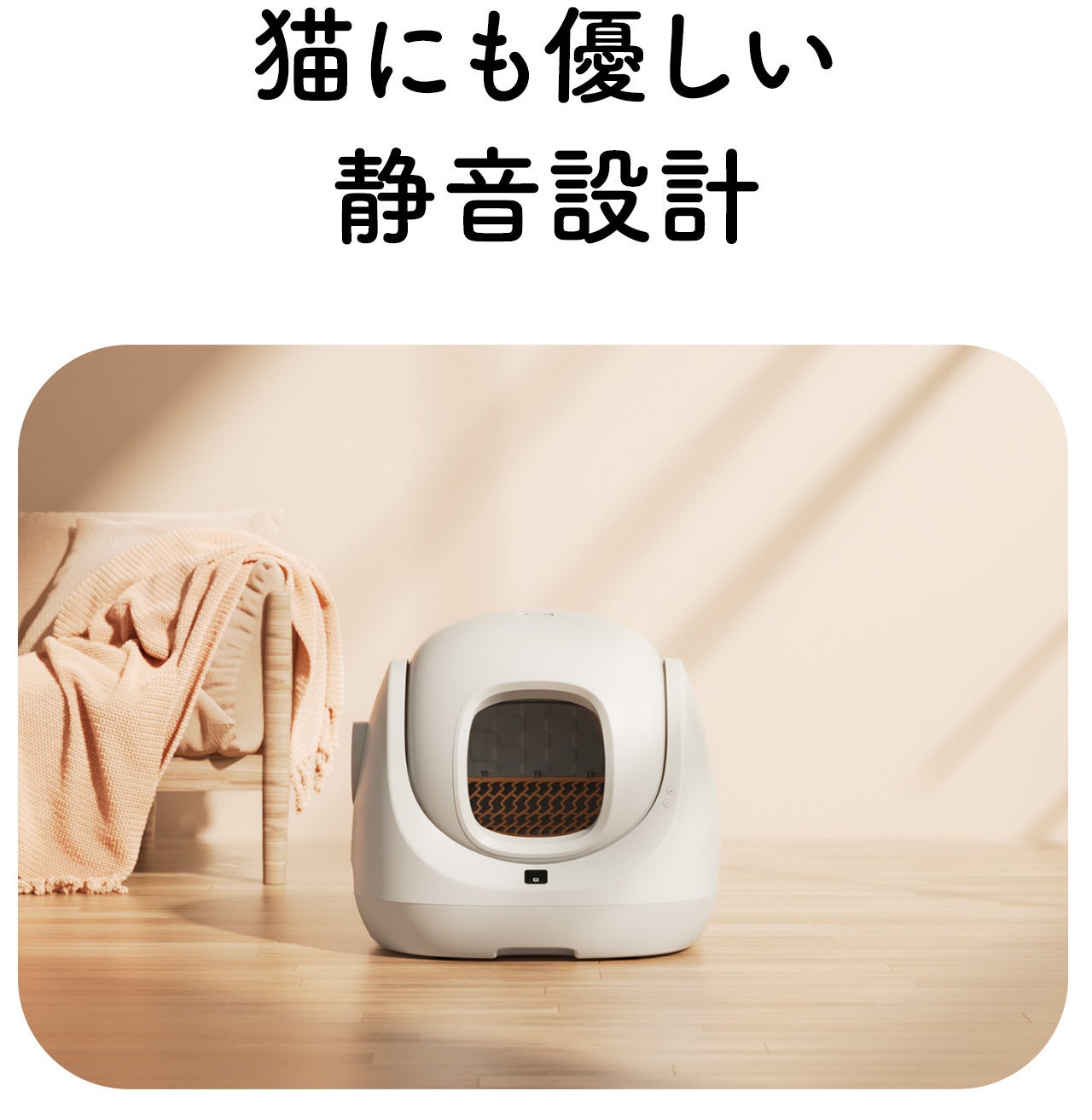 お掃除中の回転音が大きいと、敏感な猫は恐れて自動猫トイレを避けることがあります。そのため、静音性を重視し、設計において音を最小限に抑えることを実現しました。