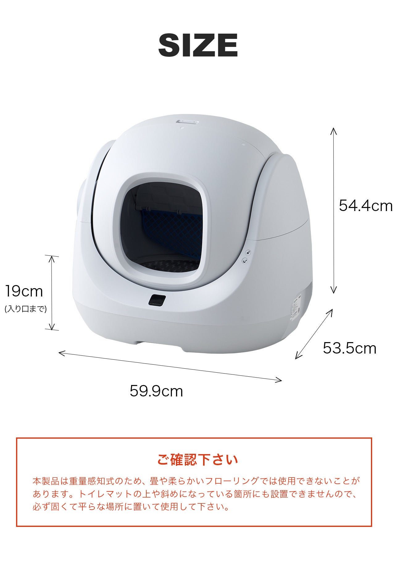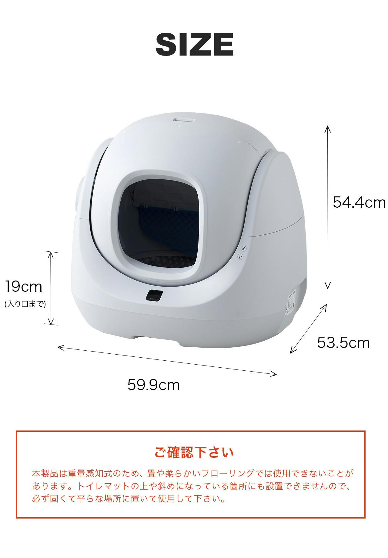 ドーム内の広さは、幅44.8×奥32×高36.6cm。入り口までの高さが低めなので、幅広い猫種に対応しています。※体重1.5kg未満の子猫は電源を入れずにトレーニング用としてご使用ください。
