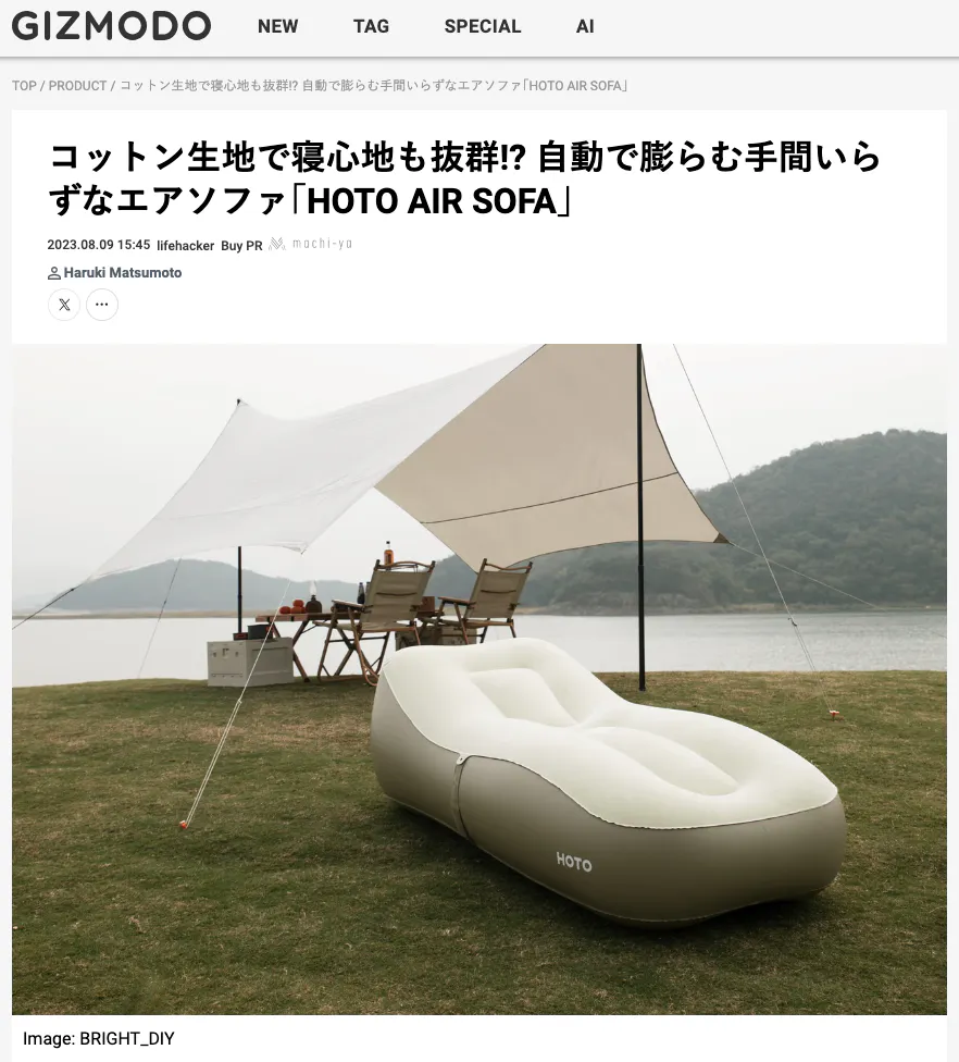 先日、GIZMODOで「HOTO AIR SOFA」を紹介して頂きました。