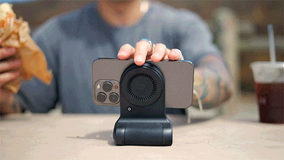 MagSafe機能のおかげで置くだけで吸着し、一眼レフカメラのような感覚で撮影できます。