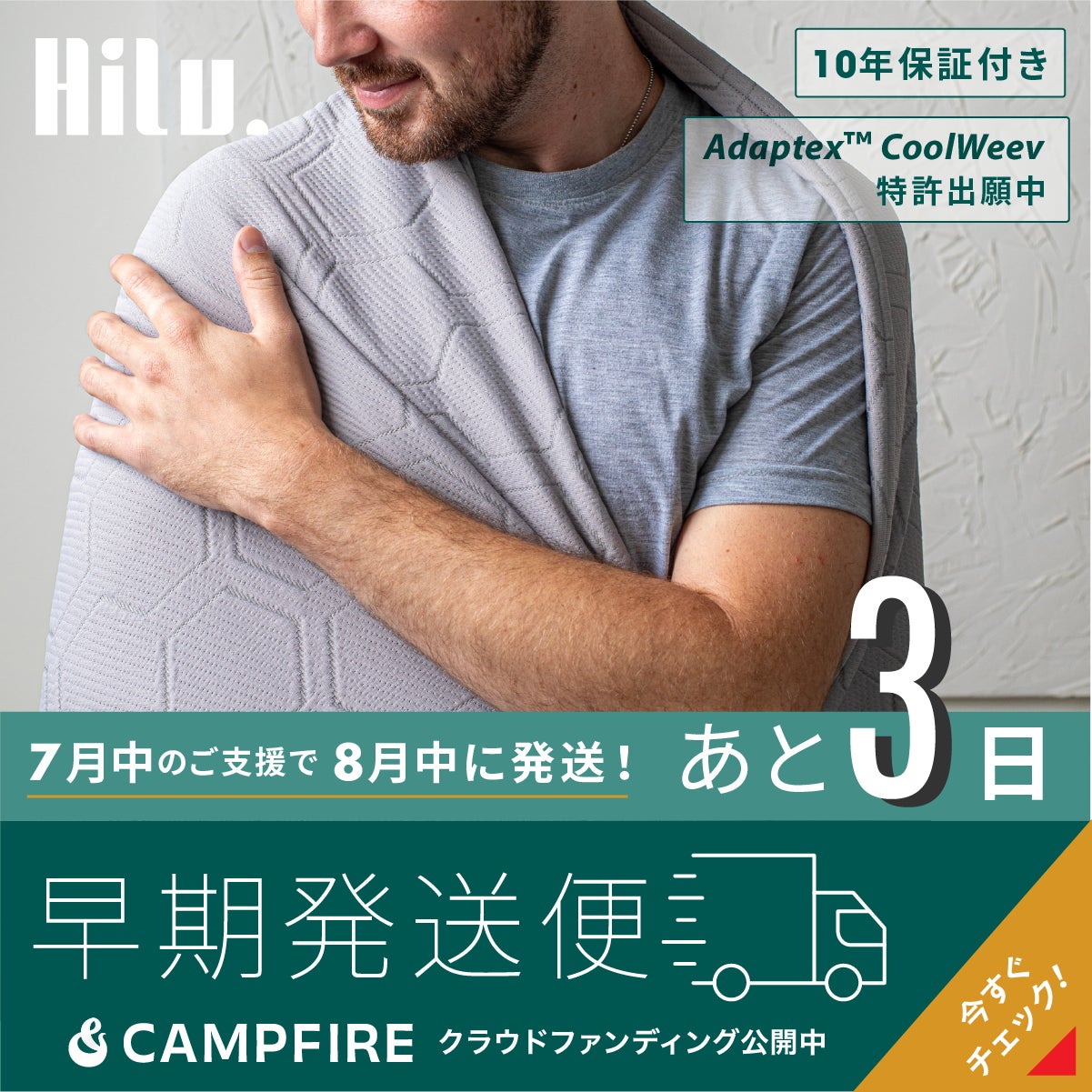 7月31日までのご支援で、先着100名様に8月中にHILU Bluvet(ヒル・ブルベット)を発送いたします。