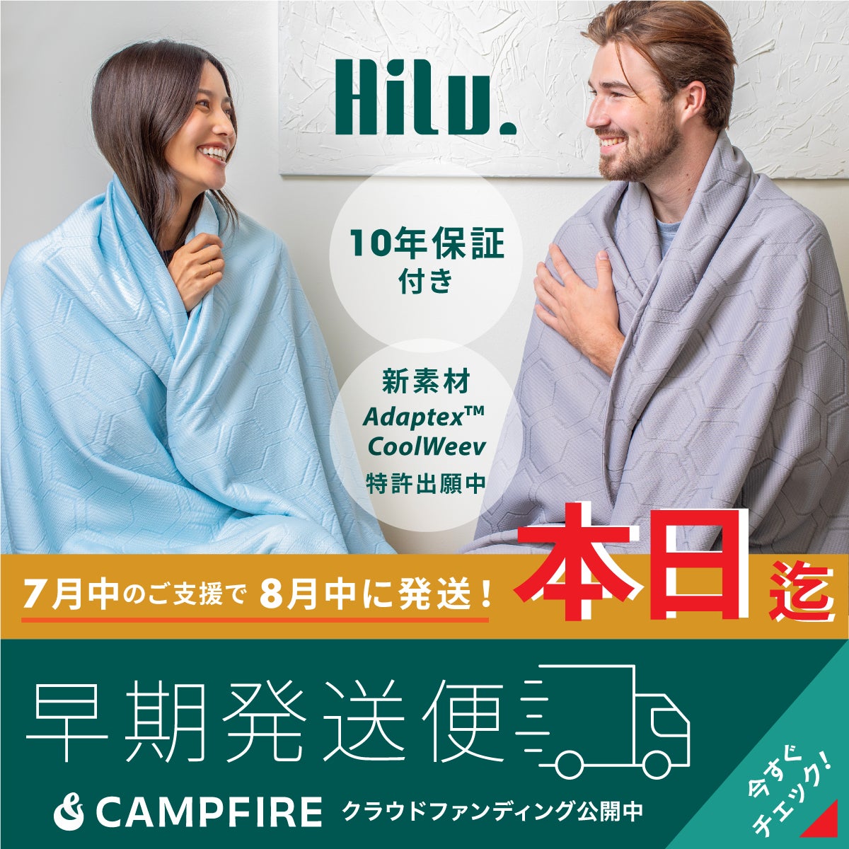 こんばんは。HILU運営チームです。ヨガやジョギングなどで着るスポーツウェアは、軽くて速乾性があり、何度洗ってもサラサラの手触りが続きますよね。汗をしっかり吸収して逃がす機能も損なわれません。HILU Bluvetの生地にも、このスポーツウェアと同じ繊維技術が使われています。糸自体に疎水性があり、水分を弾いて素早く外へ放出します。そのため、HILU Bluvetは睡眠中のムレや寝汗対策に最適。就寝中にかくといわれるコップ1杯分の汗も、熱とともに湿気を外へ逃がし続けるので、一晩中サラサラで快適です。ひんやり気持ちよく、朝まで健やかな眠りをサポートします。\ 今ならクーポン利用で1,000円OFF /https://camp-fire.jp/projects/837319/view?ctoken=U60IsN4tv5HhIlLt皆さまのご支援を、心よりお待ちしております。HILU Japan 一同最新情報は公式SNSでも配信中!【公式SNS】𝕏(旧Twitter) :https://x.com/hilujapanInstagram :https://www.instagram.com/hilujapan/Facebook :https://www.facebook.com/profile.php?id=61576802175429LINE :https://lin.ee/GoSOc7V