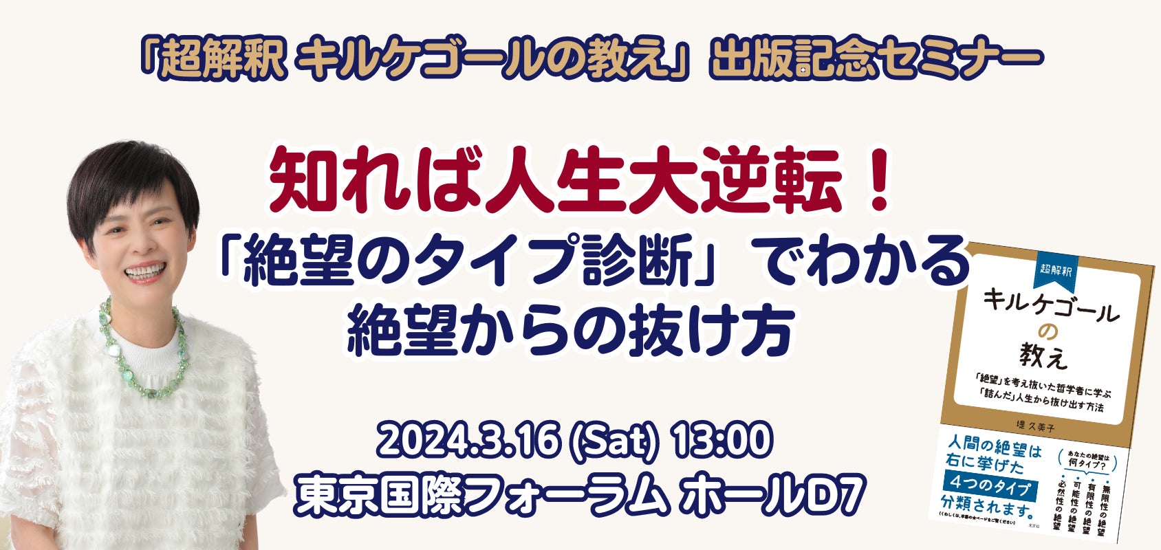 2024/02/26 14:03このたびは、フィロソフィー・フェスティバルへのご支援をありがとうございました。おかげさまで、1月28日(日)をもちまして、約2ヶ月開催をしておりましたクラウドファンディング「フィロソフィー・フェスティバル」が閉幕いたしました。そのご報告とお礼をお伝えさせていただきます。ご支援いただいた方お一人おひとりの温かい言葉に励まされ、ゴールすることができました。フィロソフィー・フェスティバルの閉幕後も、皆様の中で「哲学すること」が日常となり、誰もが哲学を楽しみ、誰もが当たり前に自分らしく生きる世界をつくるための活動を続けて参ります。■リターン発送のご案内■新刊『超解釈キルケゴールの教え』は当月初旬に発送させて頂きました。リターン動画の配信日程も、個別にメッセージをお送りいたしました。不明な点がございましたら、このメッセージにご返信くださいませ。また、リターンにもございました『3月16日:出版記念セミナー』ですが、まだお席の余裕がございます。著者である堤子美子に直接質問もできる機会もございます。絶望のタイプ診断をさらに深め、「絶望を生きる日常の哲学」を探求する機会として、ぜひ、ご参加ください。「超解釈 キルケゴールの教え」書籍1冊プレゼント付きです。◆「超解釈 キルケゴールの教え」出版記念セミナー◆知っていたら人生大逆転!絶望のタイプ診断が示す絶望からの抜け方〜「超解釈 キルケゴールの教え」出版記念セミナー〜(書籍1冊付き)■日時:2024年3月16日(土)13:00~15:30受付開始:12:30https://ii-associates.smartcore.jp/M02/event_detail/VmpkU1pRVTJCakE9■会場:東京国際フォーラム ホールD7■講師:堤久美子■参加費:アソシエイツ会員 7,150円(税込)未会員 8,250円(税込)(会員・未会員いずれも書籍1冊プレゼントいたします。)https://ii-associates.smartcore.jp/M02/event_detail/VmpkU1pRVTJCakE9一般社団法人アイアイ・アソシエイツクラウドファンディング部門事務局 もっと見る