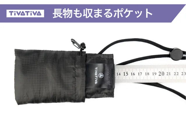 持ち運びにも便利なケース兼ポケットは、外での利用を考え汚れや水にも強い素材で作られています。また、薄くて丈夫なのもこのケースの特徴の一つです。