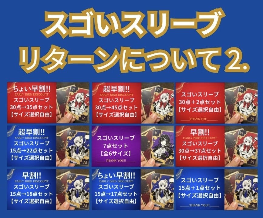【スゴいスリーブセット】をご注文の皆さまへ、リターン準備に向けたサイズ選択の仮申請についてご案内です。CAMPFIREの個別メッセージを配信いたしましたので、ご確認をお願いいたします!