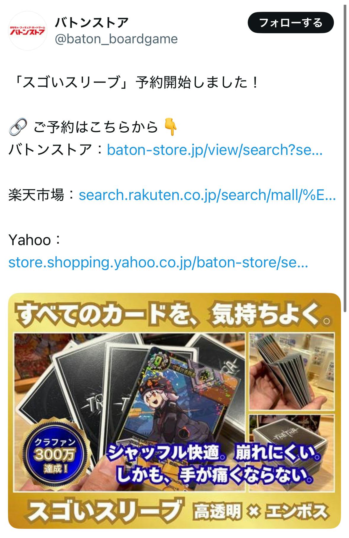 スゴいスリーブ、販売拡大中!