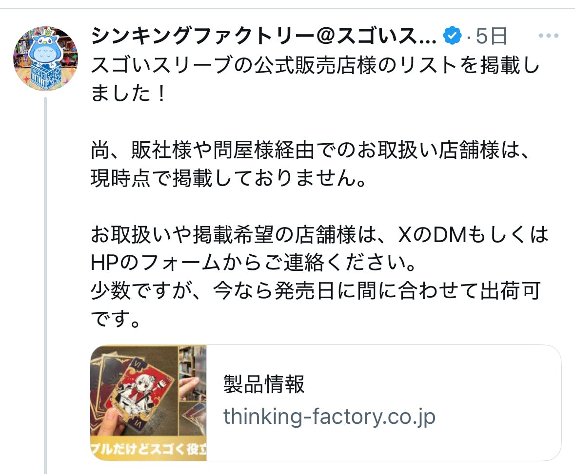 《 スゴいスリーブ:取り扱い店舗一覧はこちら》