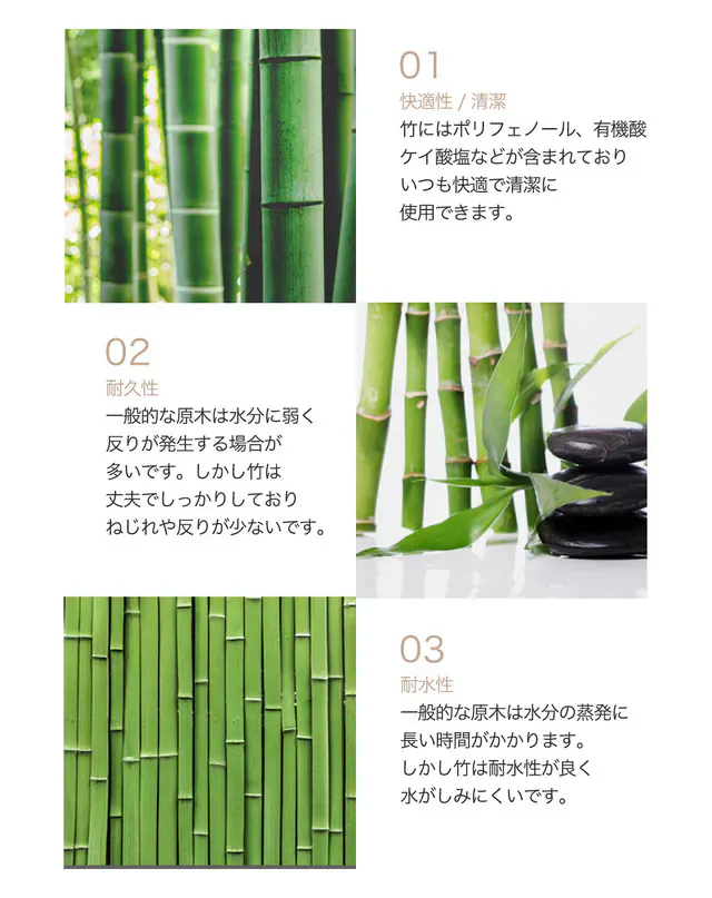 テーブル部分は、快適性/清潔・耐久性・耐水性に優れた竹を使用しました。