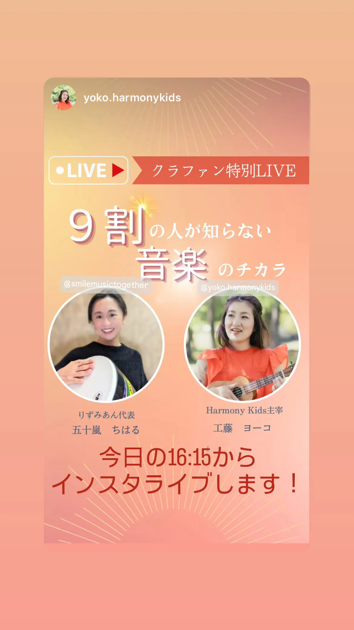 Music Togetherのヨーコ先生がインスタライブを開催してくれました!本当にありがとうございます。