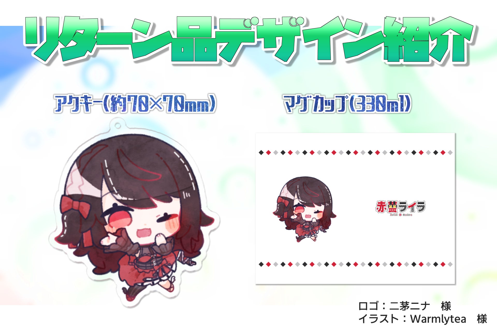 ゴシック衣装の赤蕾ライラ(デフォルメ)とロゴをあしらったマグをお届けします!