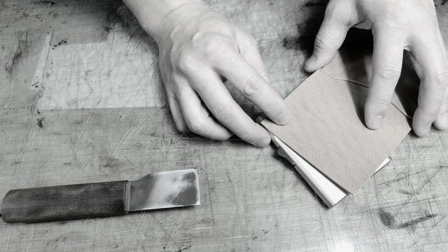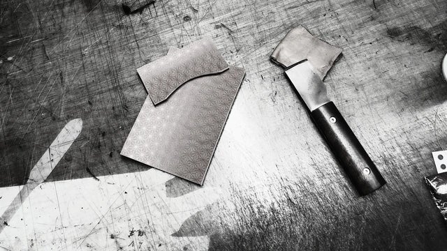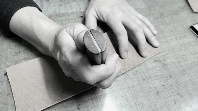 小紋柄を型押し加工した【京友禅革】は、浅い凹凸の中に細かい点・線を使った繊細な表現になっており、見る角度、光の当たり方によって見える上品な柄を楽しめます。