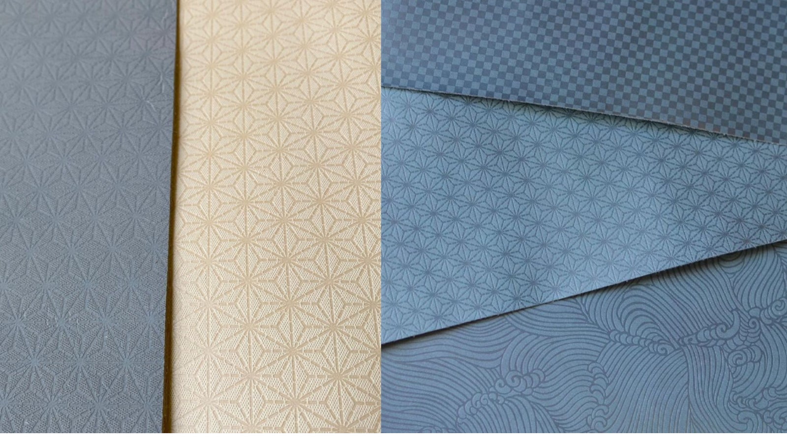 今回のプロジェクトでは、3種類の革(カラー)と2種類の小紋柄(デザイン)をご用意しました。