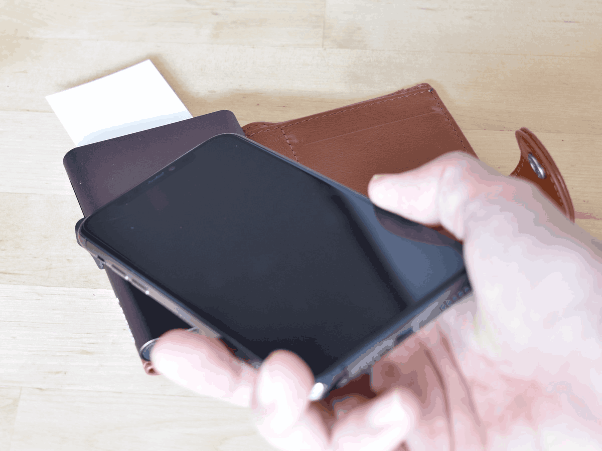 PASMOやICOCAなどの非接触型のICカードは、財布の外側にあるカードポケットに入れておけば、財布をそのままかざすだけで使用できます。