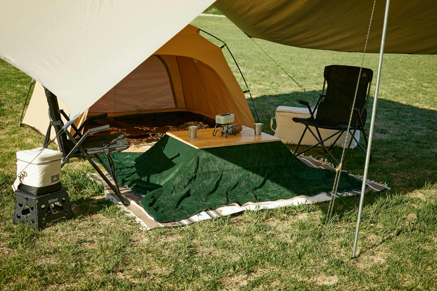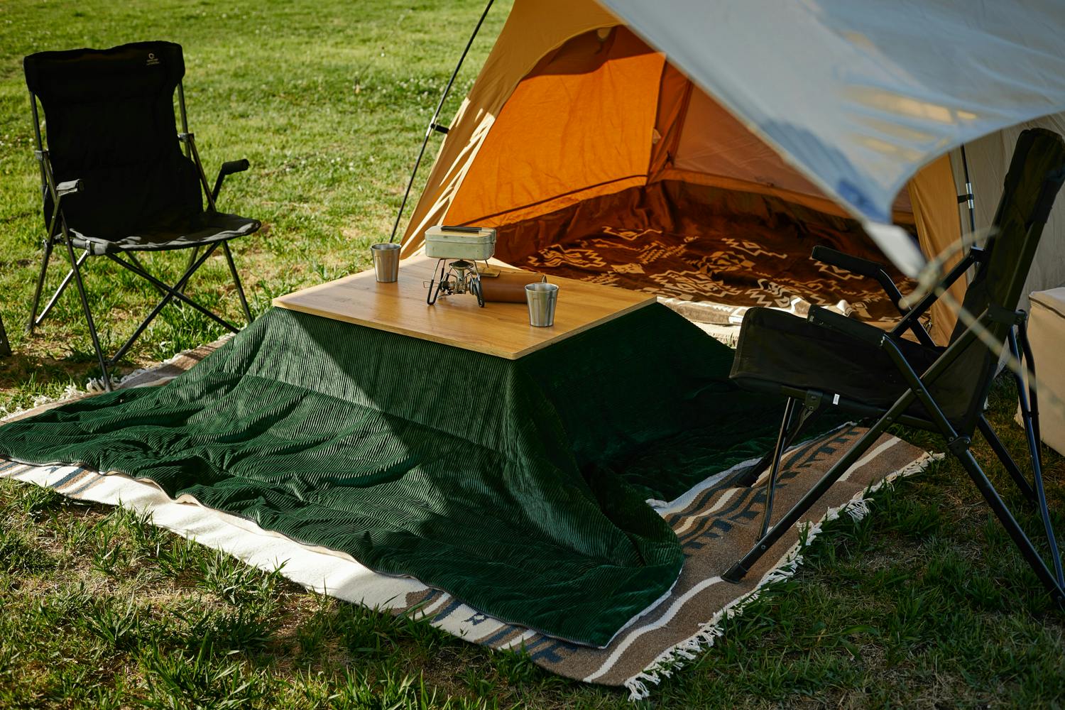 ラグやクッション、ムートンなどの自社製品をキャンプで使う機会が増え、インドアとアウトドアを兼ねたアイテムの魅力に可能性を感じるようになりました。