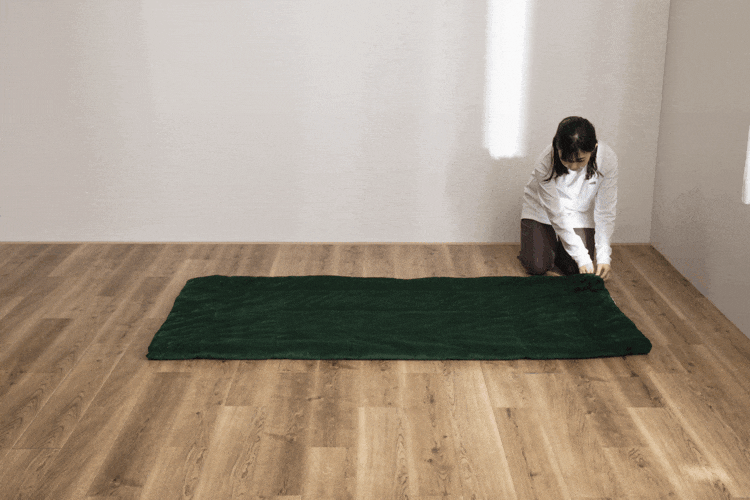 シュラフの状態から折り畳んでカバーに入れるだけ!一人でも簡単に収納できます。