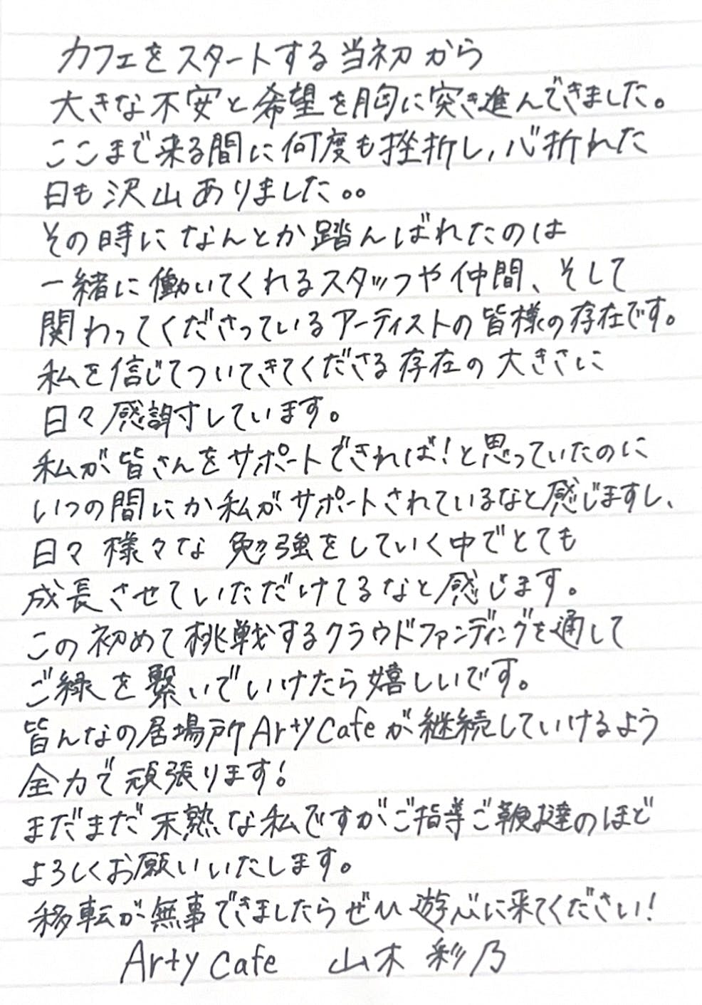 僕の大切な居場所であるArty cafe の継続を、心より願っています。クラウドファンディング応援どうぞよろしくお願いします。
