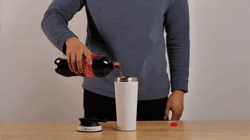 炭酸飲料を入れても圧力によって、フタが空かない構造になっています。使う用途が炭酸飲料まで入れられるから広がります。
