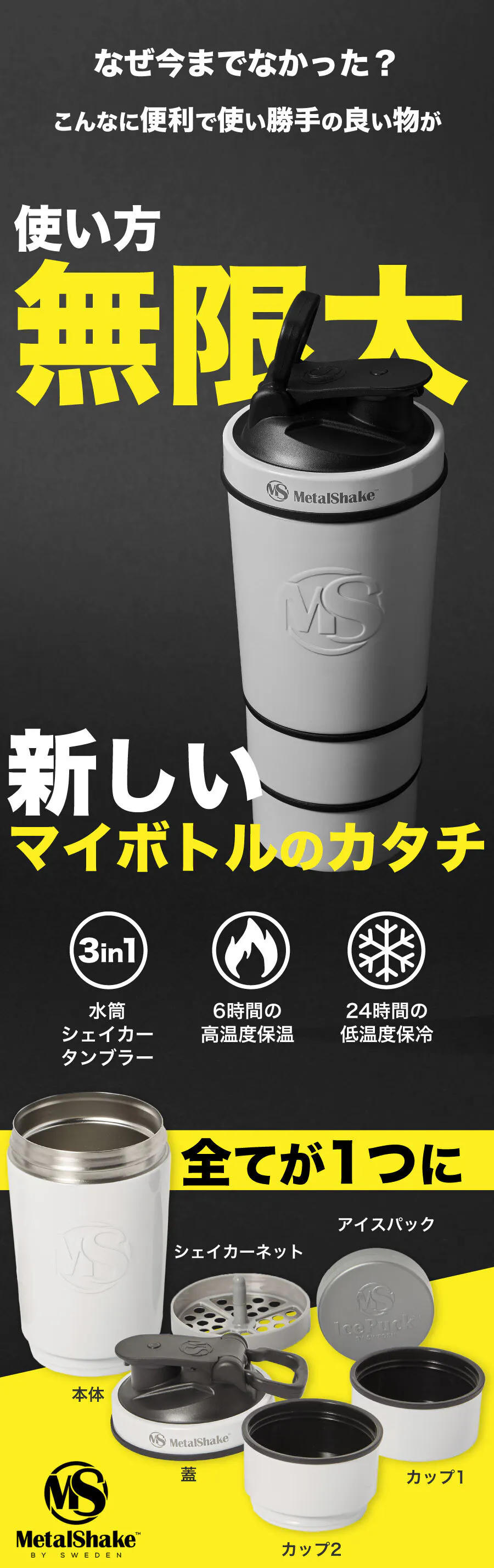 ●2重断熱構造メタルシェイクは更に2重断熱構造で、最大6時間保温と最大24時間保冷を実現しています。