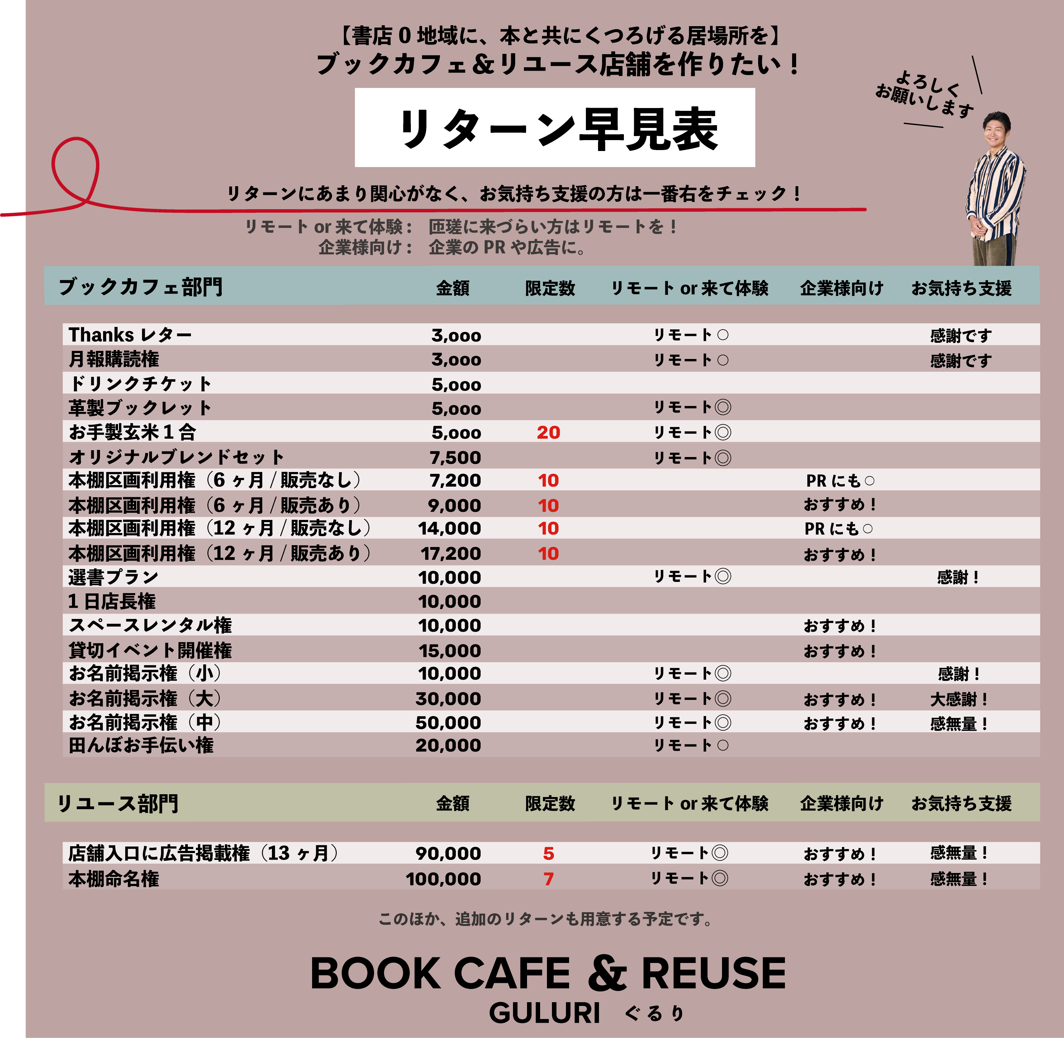 <リターンを早く確認したい方は、下の方にある「リターン早見表」をご確認ください>