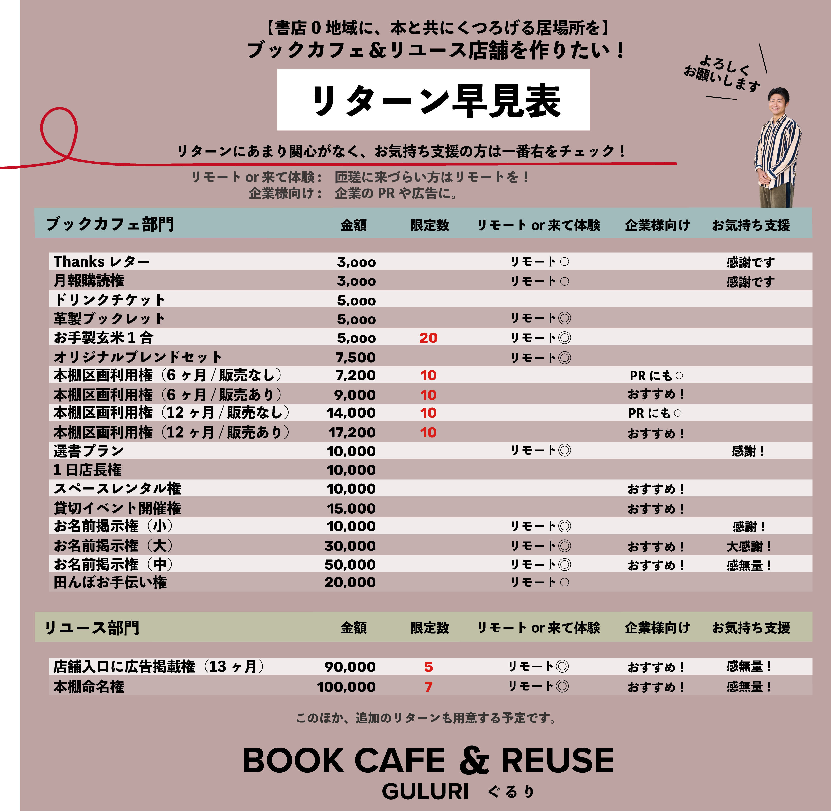 <リターンを早く確認したい方は、下の方にある「リターン早見表」をご確認ください>