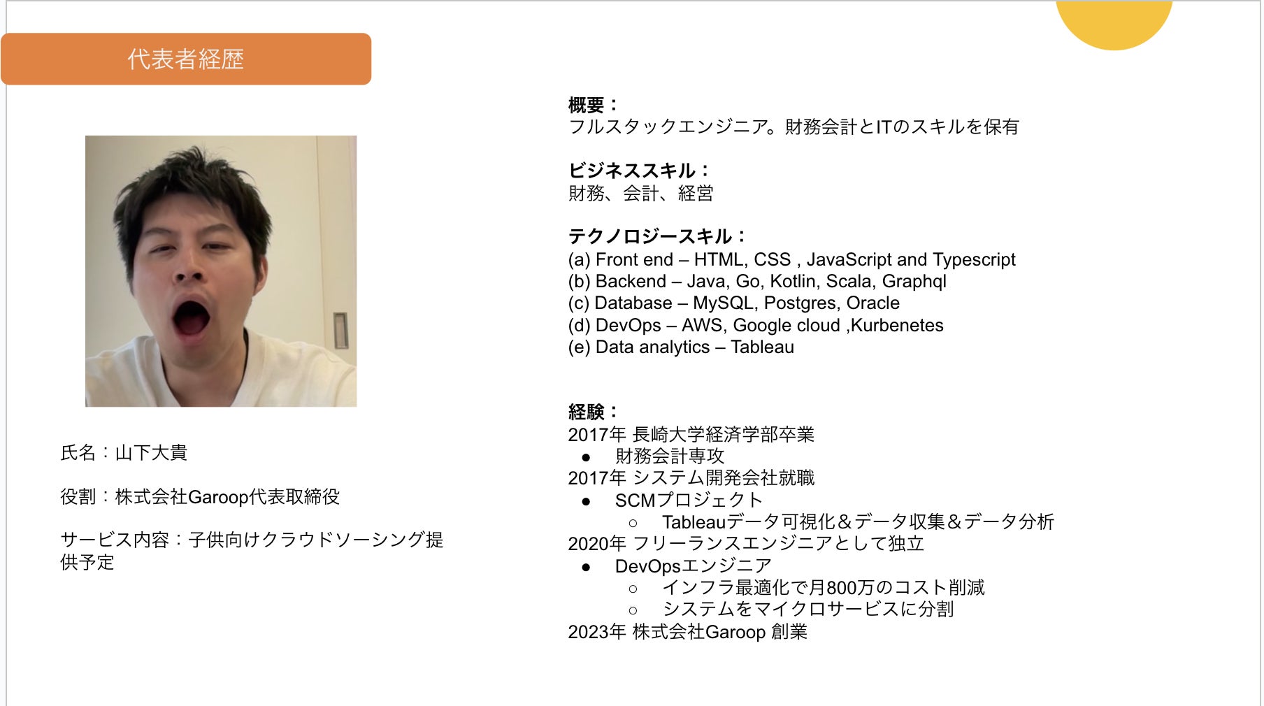【Garoop代表 山下の経歴】