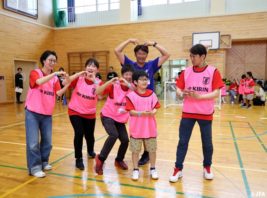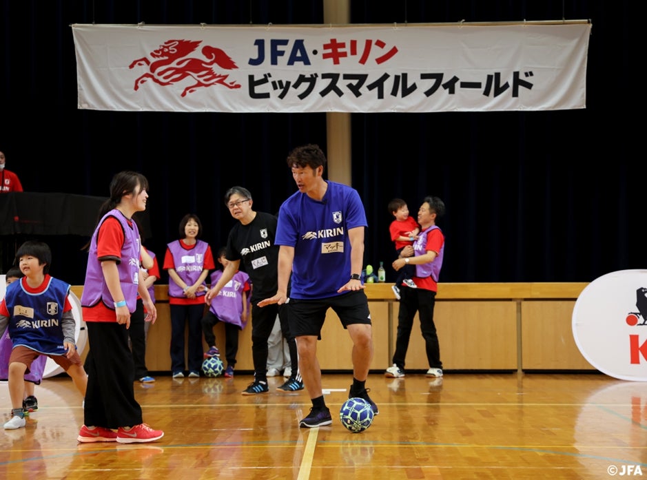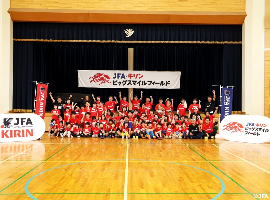 キリンホールディングス株式会社と、公益財団法⼈⽇本サッカー協会は共同で、能登半島地震の復興応援プロジェクト「JFA・キリン ビッグスマイルフィールド」を始動し、第1回⽬を5⽉12⽇(⽇)に⽯川県能登町⽴柳⽥⼩学校にて開催。地元の⼩学⽣やご家族など地域の皆さんが74名に参加をいただきました。
