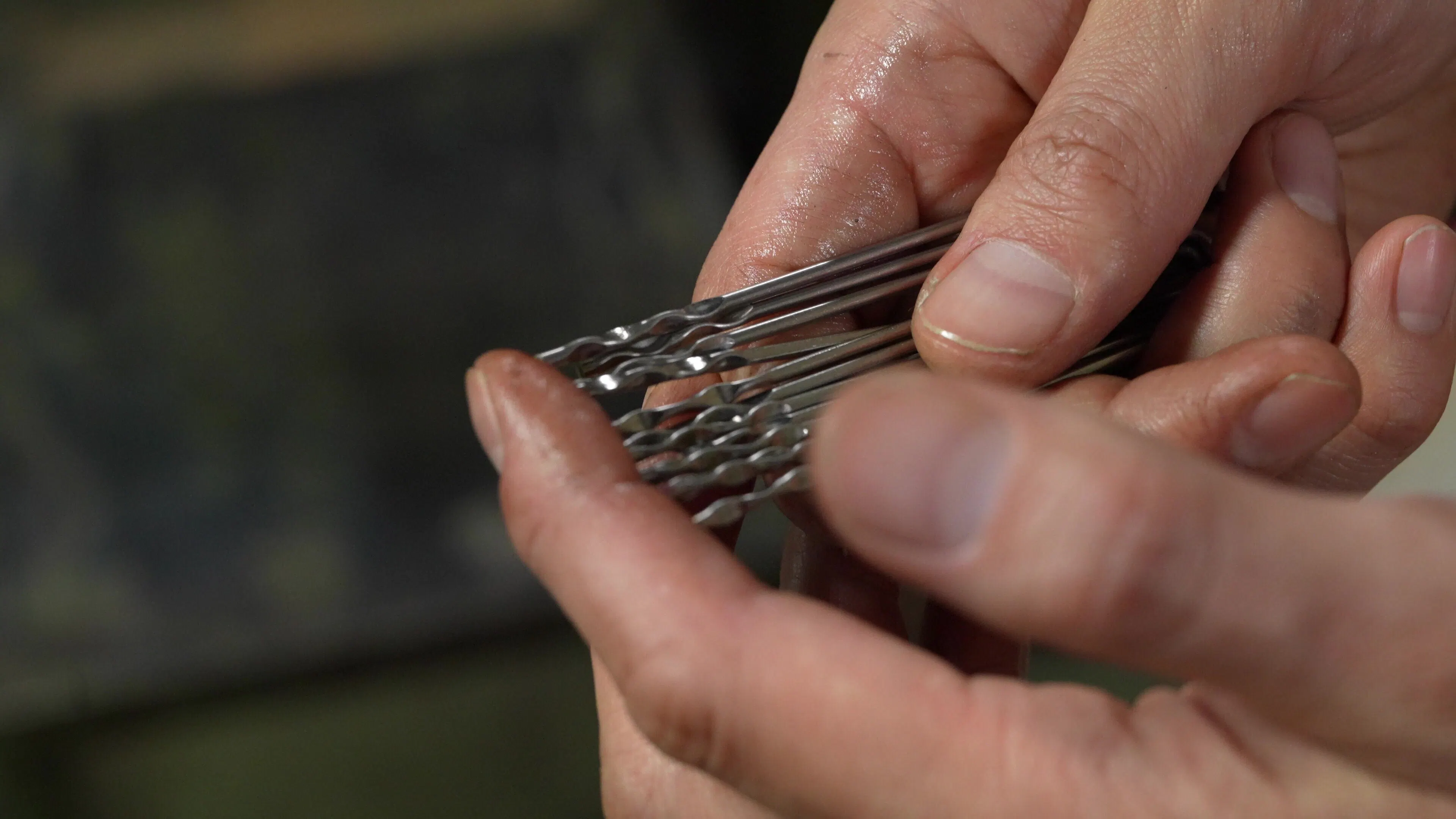 私自身は家業に戻ってまだ6年ですが、1本の鋼線から20以上の工程を経て、この形にたどり着くことに、いつも感動しております。