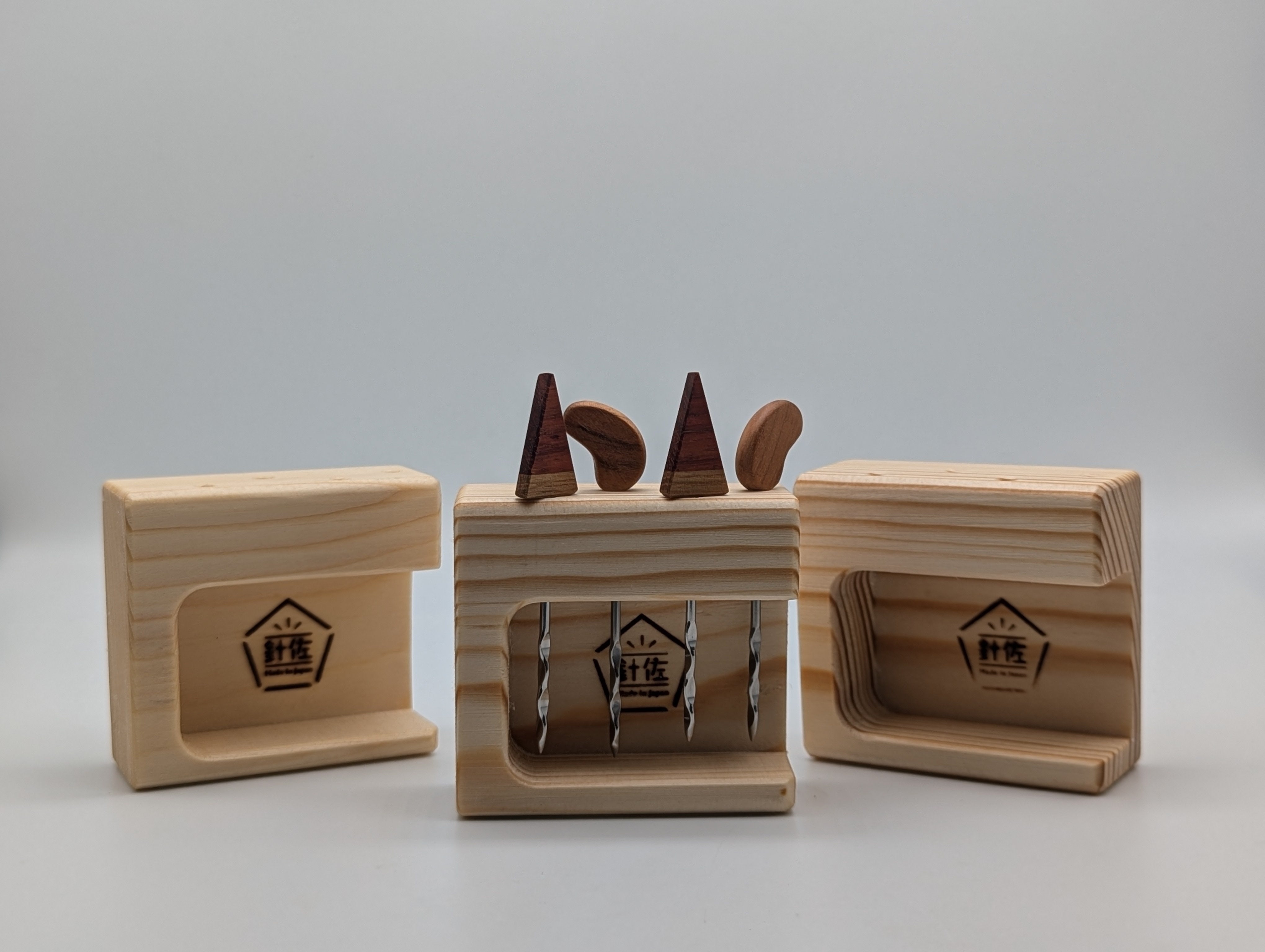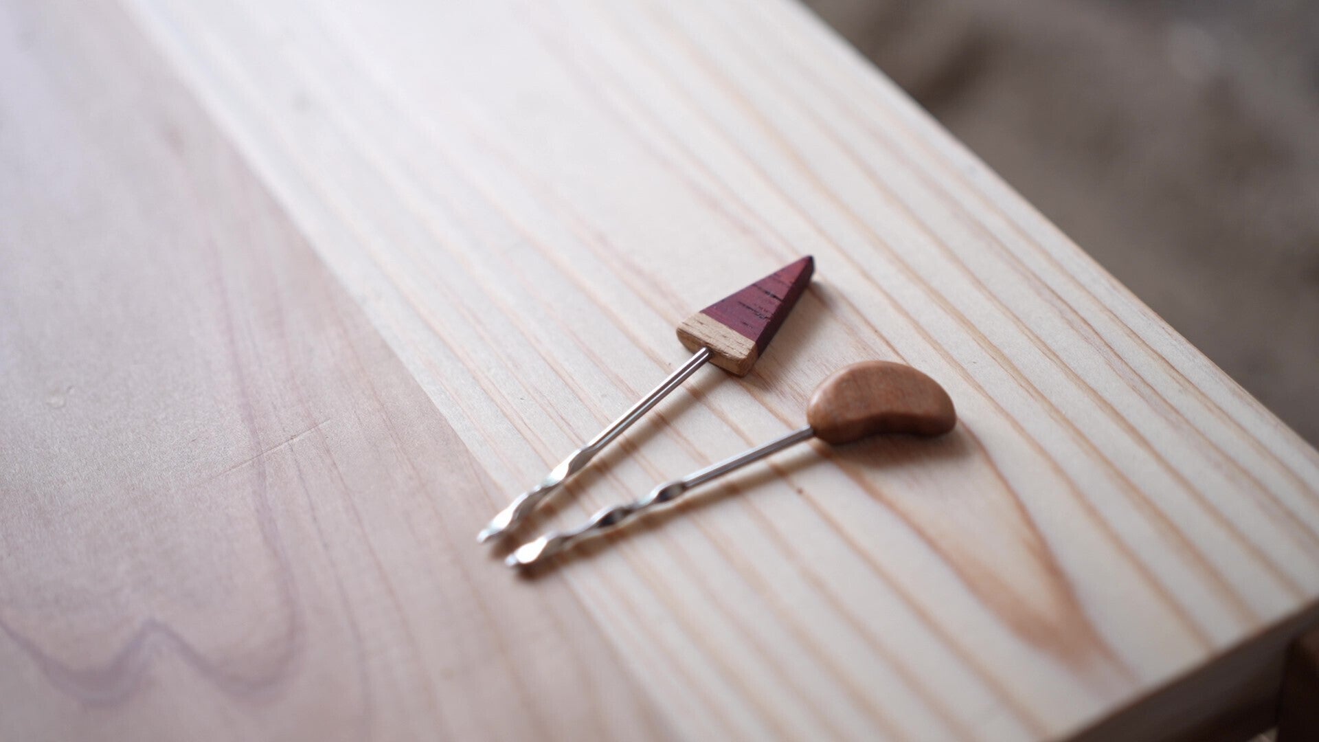 金属のピックに木のあたたかみを取り入れるため、自分たちの大好きな木工職人「手仕事屋manomano」の井上さん、小磯さんに相談。