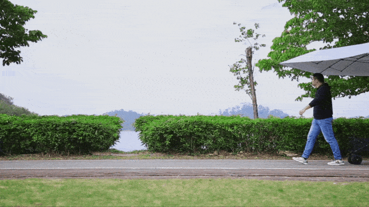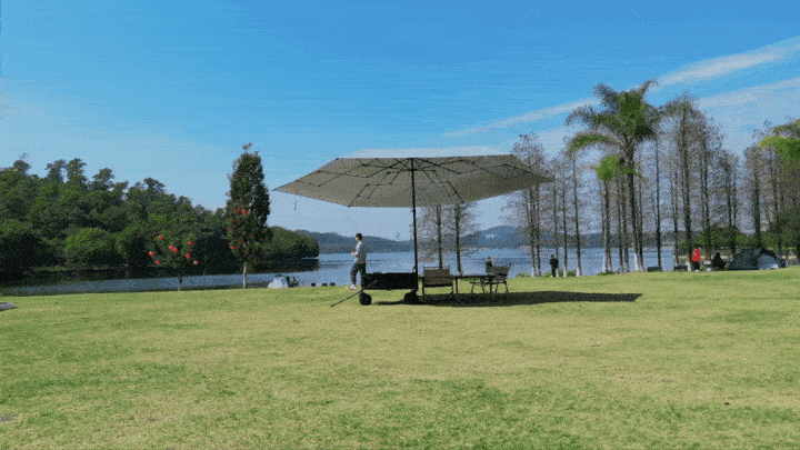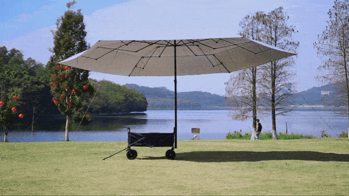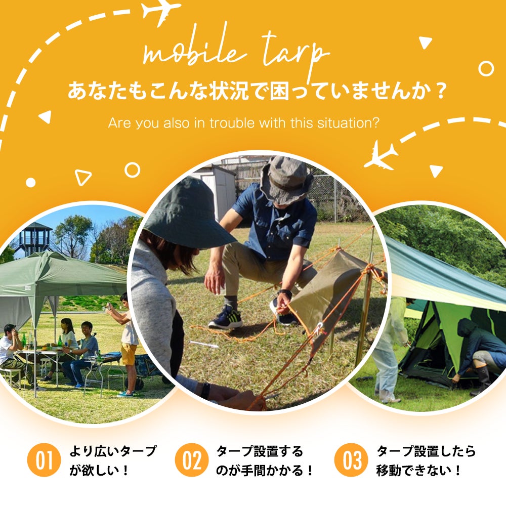 キャップや公園に行った時に、タープ設置するのがとてもやりづらいという思いがあったので、傘形移動式タープのプロジェクトを企画しました。