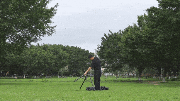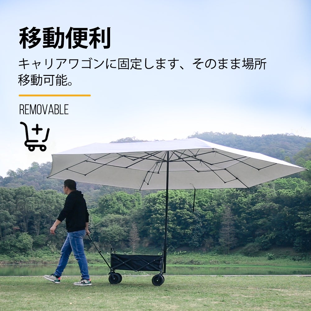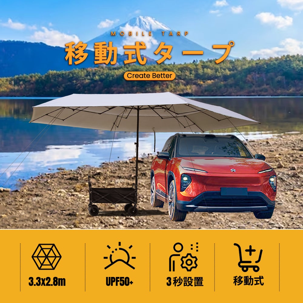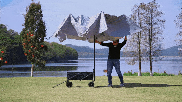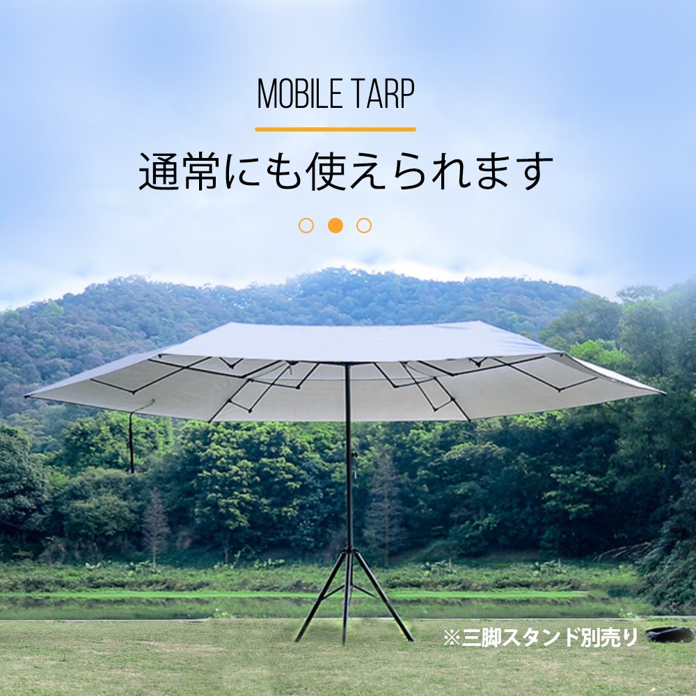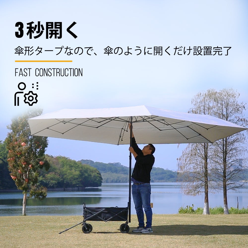 従来のタープ設置方法ではなく、傘のように3秒で開きます!