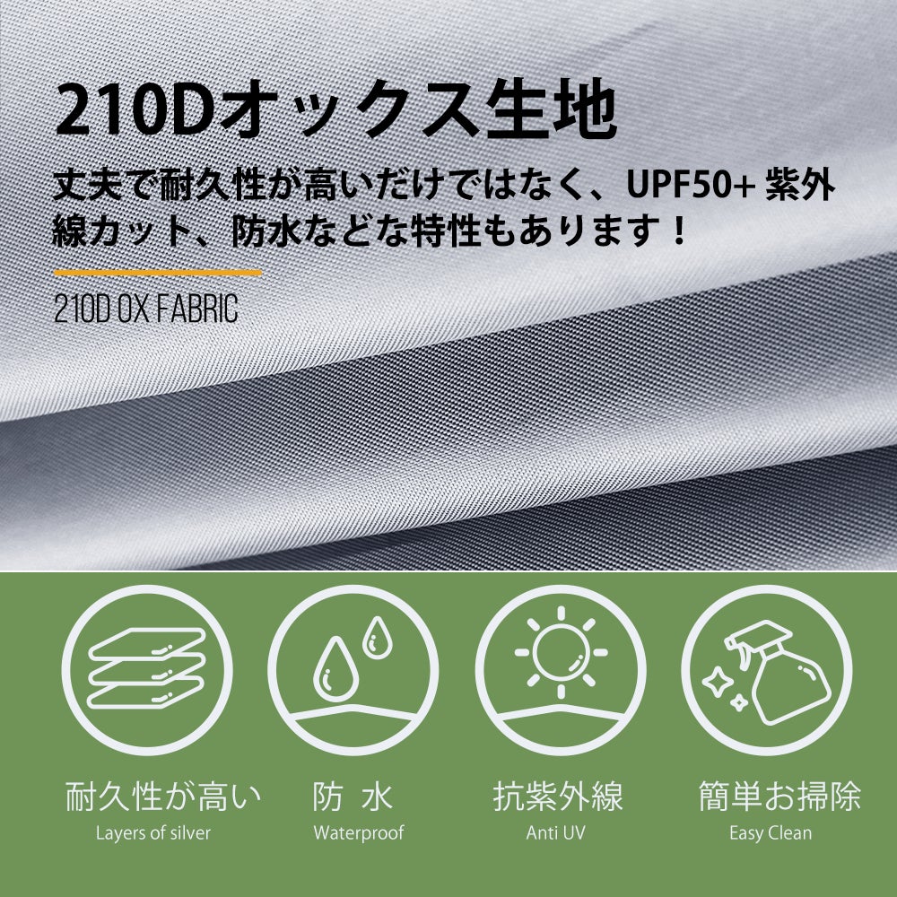 210Dオックス生地使用。防水に加え、UPF50+紫外線カットコーティングを施しています。