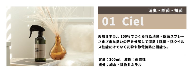 シュッと手軽にスプレーできる消臭・除菌・抗菌スプレーの「01Ciel(シエル)」