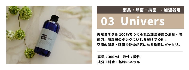 加湿器に添加し噴霧する、消臭・除菌・抗菌機能をもつ「03Univers(ユニベール)」