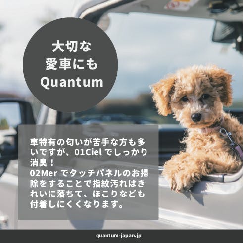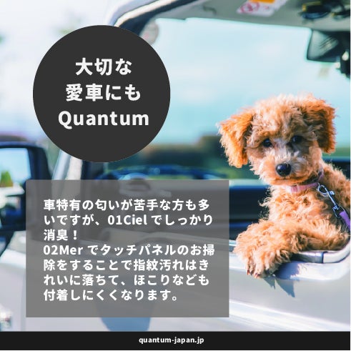 ふつうはいやな臭いがしてから消臭スプレーをしますが、Quantum(クアンタム)は予防的にスプレーすることで効果を最大限発揮します!