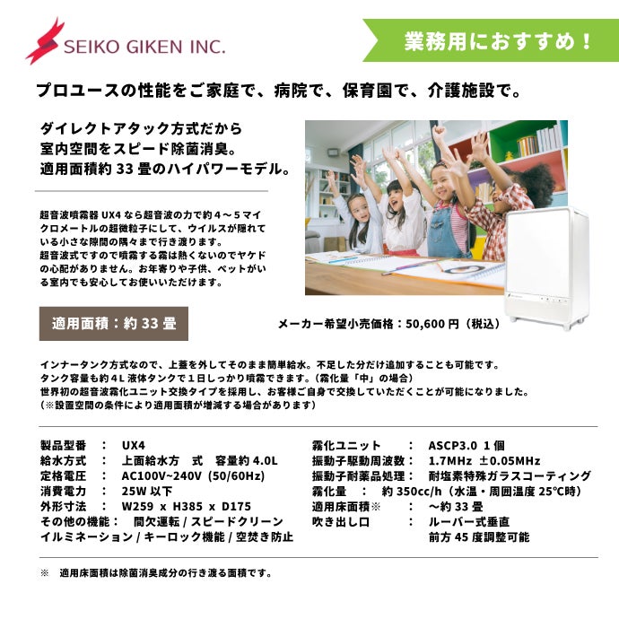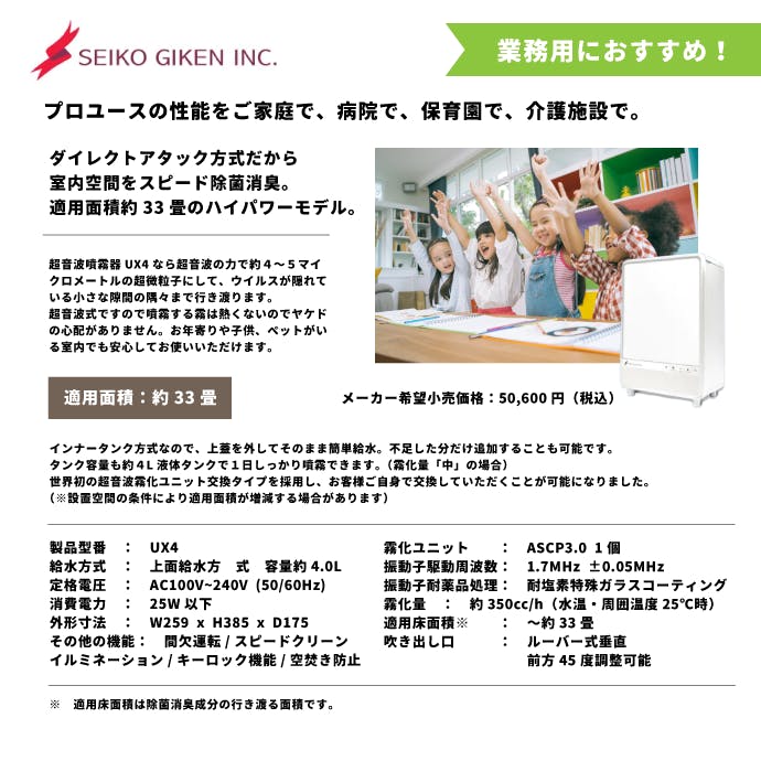 ※MX-200、UX4は次亜塩素酸専用の噴霧器として開発されたものですが、