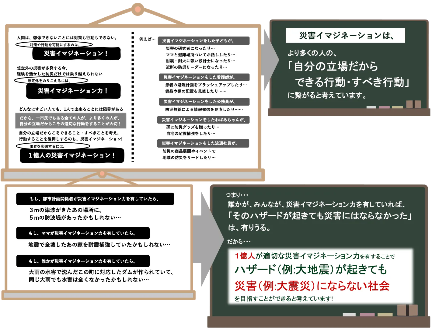 ●防災参入者及び「災害イマジネーション」能力を有する人を増やす事で、「フェーズフリー」や「コストからバリュー」の展開を促進して、