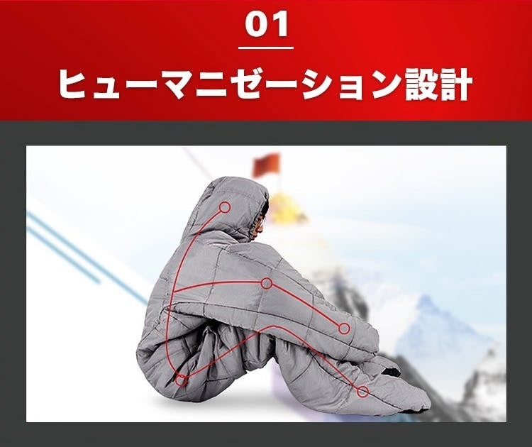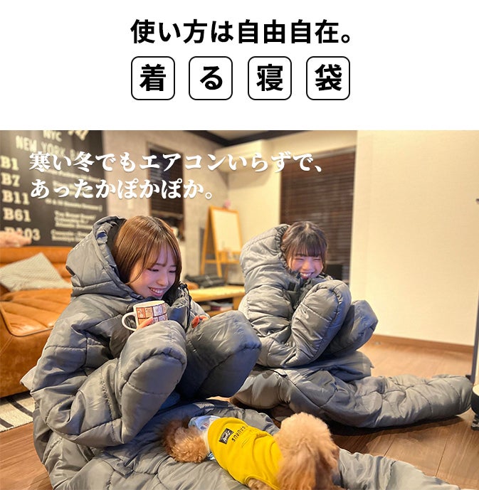 この着る寝袋は、着心地が快適で、自由な動きができる設計です。